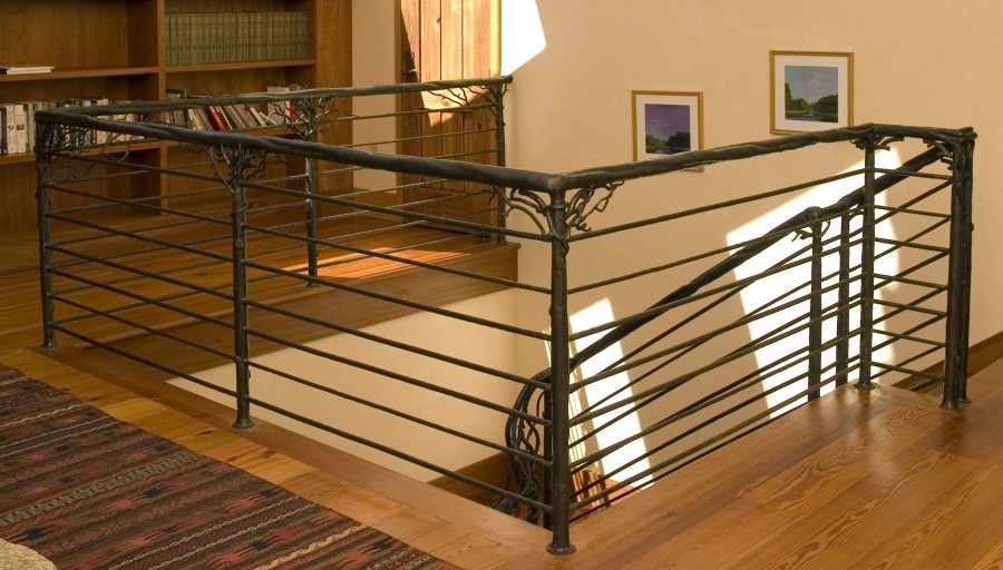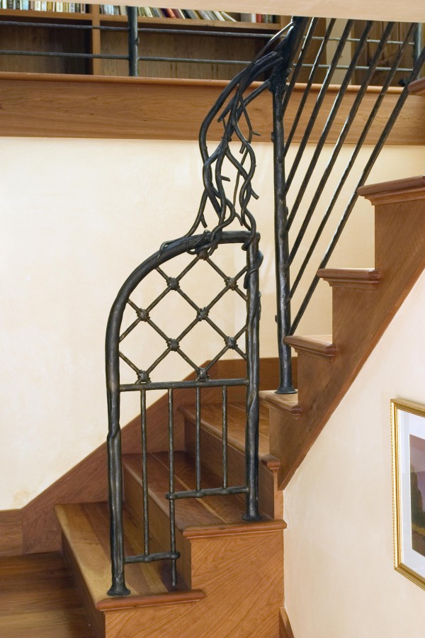 We hand forged this wrought iron stair rail to look like wood branches. Executed from the client's original vision.