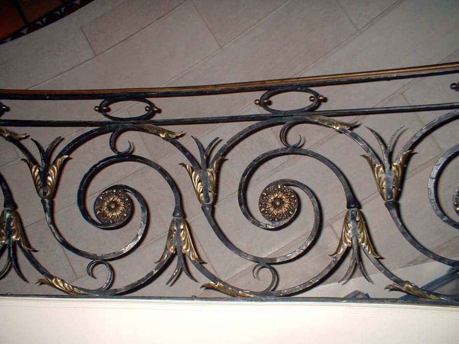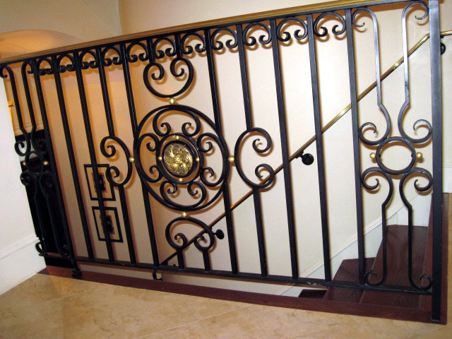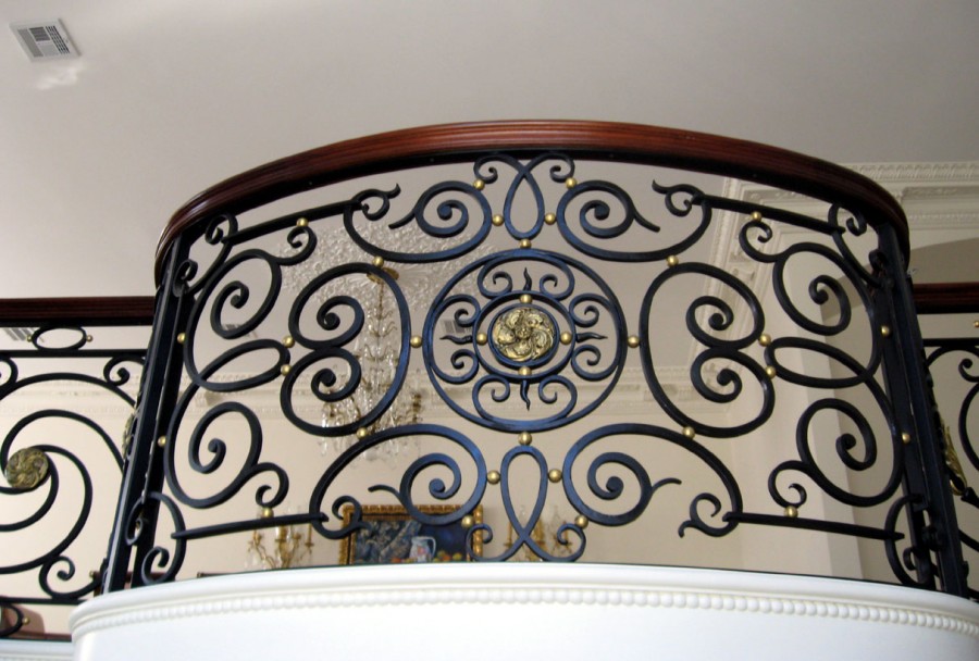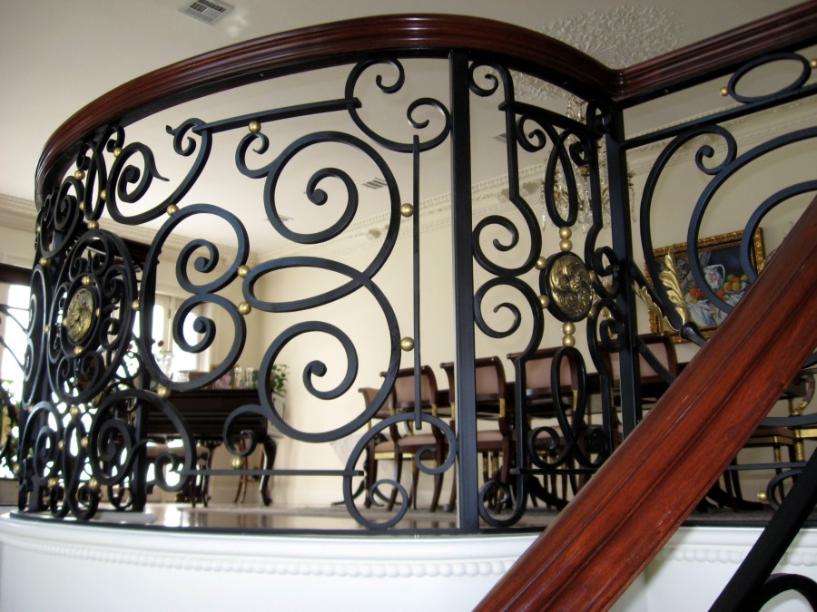 Wrought Iron Custom Railing with Bronze Medallions, balls and Leaves