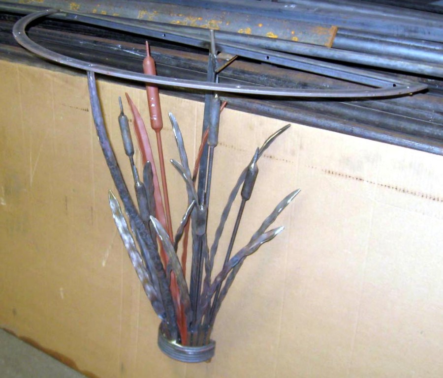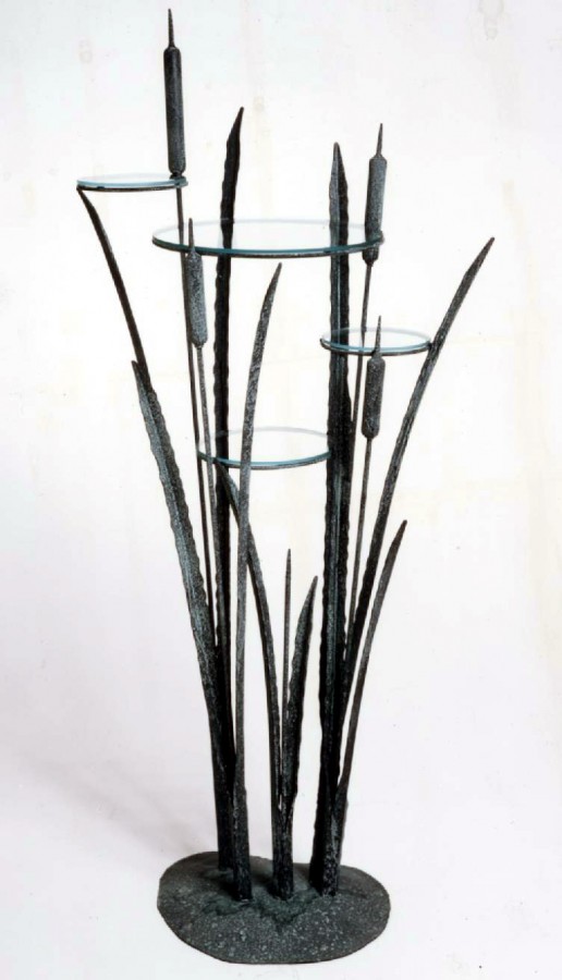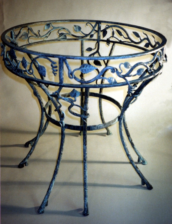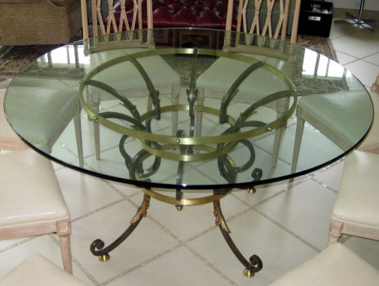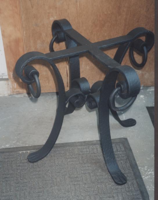 Various shapes and styles of side tables and dining room tables. Most are made for a specific top that the customer has and would like to accent and use. The tops typically range from wood, stone, and glass. As shown above, a custom ornamental coffee table base.