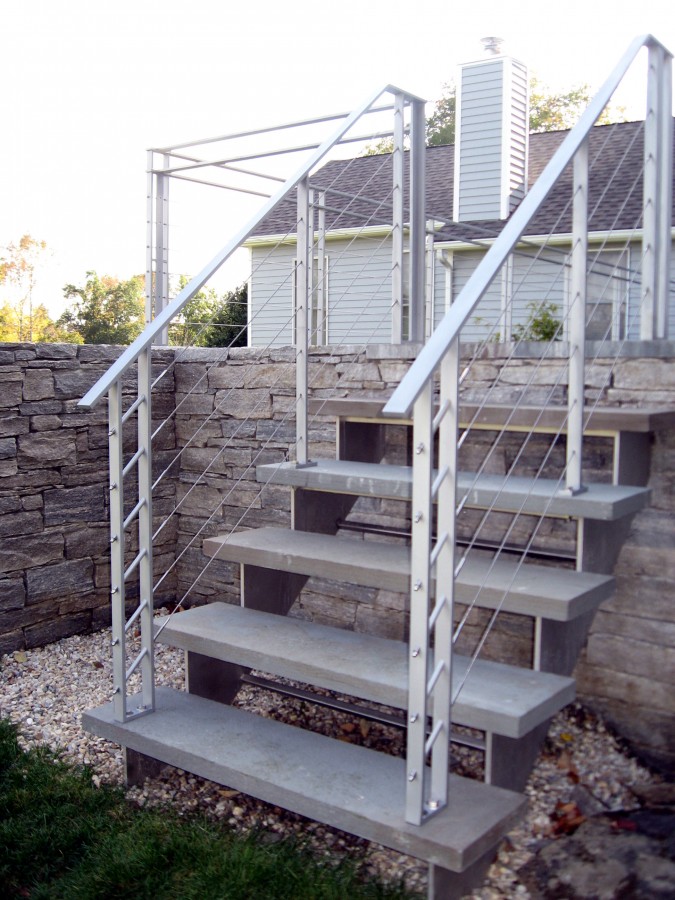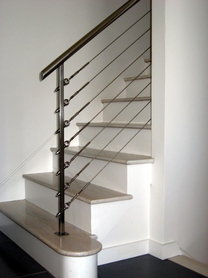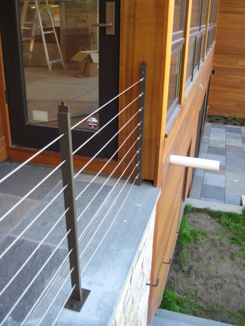 Cable rails can be fabricated in different ways and with numerous hardware options. Clients like these rails due to the fact that they are not as visible. A cable rail will not obstruct a view or look as overwhelming inside the house. The posts can be steel or wood they just need to be sturdy enough to withstand the tension on the cable. As seen above, Cable Stair and Deck Rail - Hillsdale, NY cable railiing measureing 36 1/2" tall by an overall length of 75'. The posts and hand rail are painted steel with stainless steel hardware and cable.